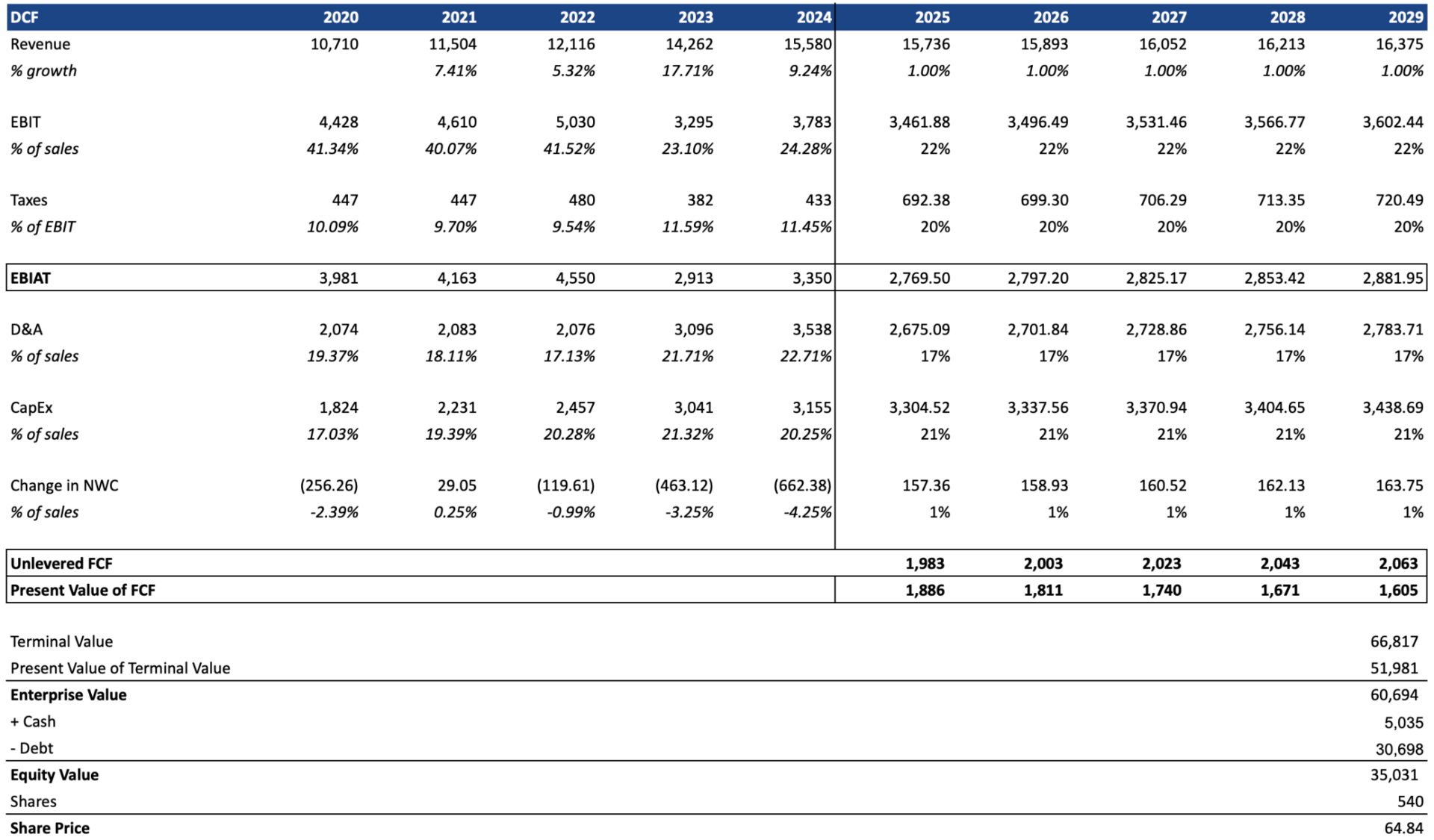 Building out discounted cash flow models for Rogers Communications, assuming a weighted average cost of capital of 5.15% and a terminal growth rate of 2%, a base case share price of $64.84 (+80.7%) is seen, a bear case share price of $37.65 is seen (+4.9%), and a bull case share price of $77.65 (+116.3%) is seen. While these models are far from perfect and consist of just estimates and projections, this still indicates serious upside. Refer to the models in the appendix to see all assumptions and estimates used.